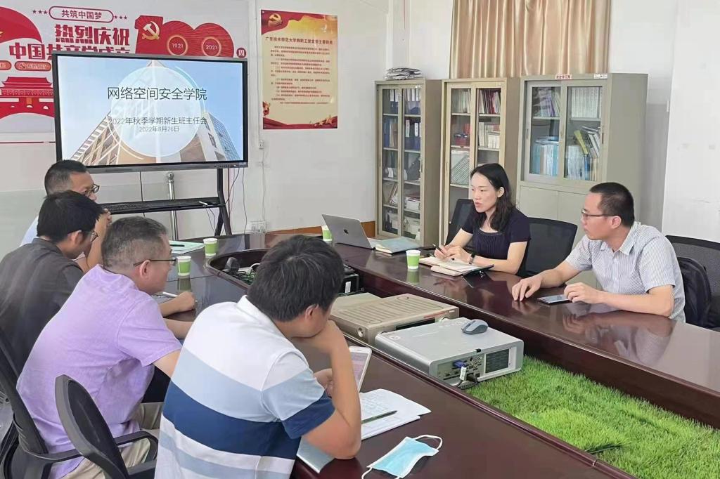 为做好迎接2022级新生入学教育相关工作,明确新生班主任工作重点,提升育人实效,网络空间安全学院于8月26日在西校区405会议室召开2022级新生班主任工作会议,学院党委副书记肖茵茵及各新生班班主任、新生辅导员老师参加会议。