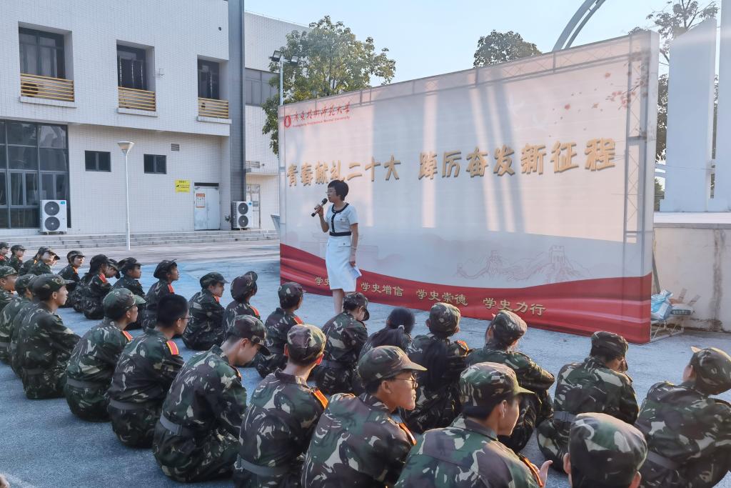 为加强军训期间新生的思想政治教育工作,切实提升军训综合育人效果,在2022级新生军训期间,网络空间安全学院党委书记陈小花及学院政工干部在白云校区开展了“青春献礼二十大,踔厉奋发新征程”的红色党史专题教育系列活动。网络空间安全学院承训教官、辅导员及2022级参训学生参加了活动。