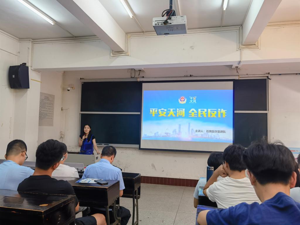 肖茵茵首先对赖警官一行的到来表示欢迎,对石牌派出所、穗园社区对网安学院的关心关怀表示感谢。讲座中,石牌派出所防诈宣讲队的警官们用生动的案例为同学们介绍了几种典型的诈骗手法,例如冒充公检法诈骗、网络购物诈骗、刷单兼职诈骗等等,让同学们提高警惕,保持清醒头脑,不贪图小便宜,防止上当受骗。并叮嘱同学们,接到不明电话或信息,要第一时间上报辅导员。
