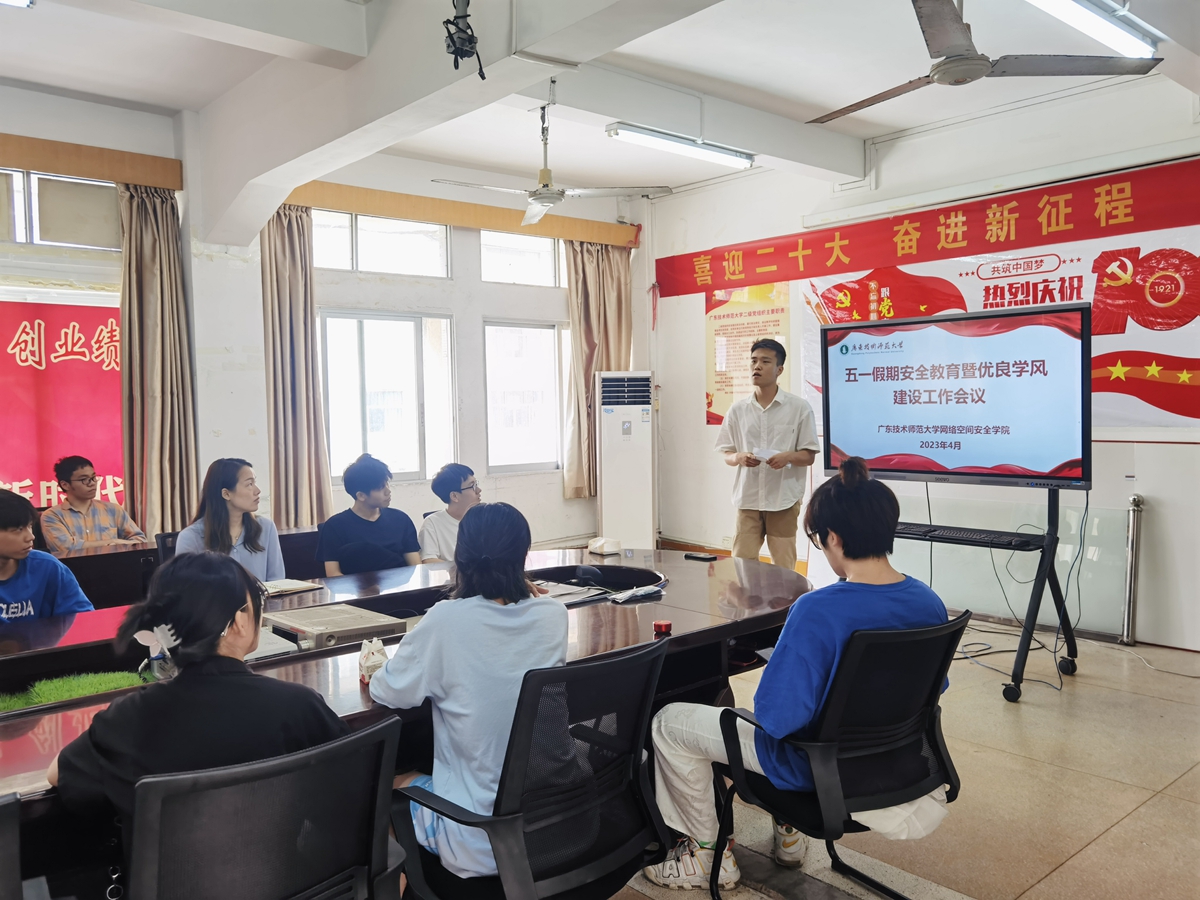 为贯彻落实学校有关五一假期安全工作相关要求,切实做到五一劳动节期间学校安全稳定,消除校园安全隐患,有效防范各类事故发生,确保我校安全形势持续稳定,为学生营造稳定良好的学习生活环境,网络空间安全学院于4月26日下午在西校区综合楼405会议室开展了五一假期安全教育暨优良学风建设会议,学院党委副书记肖茵茵、辅导员姜云鹏、各班学生代表参加了本次会议。