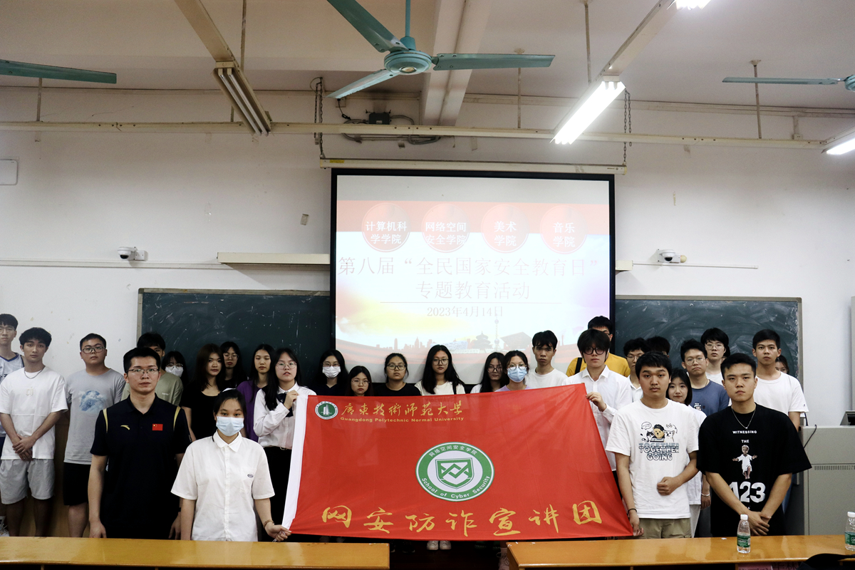 为增强全民国家安全意识和素养,筑牢国家安全的防护墙,保障学校师生的安全权益,4月14号下午,网络空间安全学院到东校区联合计算机科学学院、美术学院、音乐学院等单位共同开展“全民国家安全教育日”主题宣讲。荷光路派出所警官王剑锋、学校安全保卫处、各学院领导及辅导员老师参加了活动。