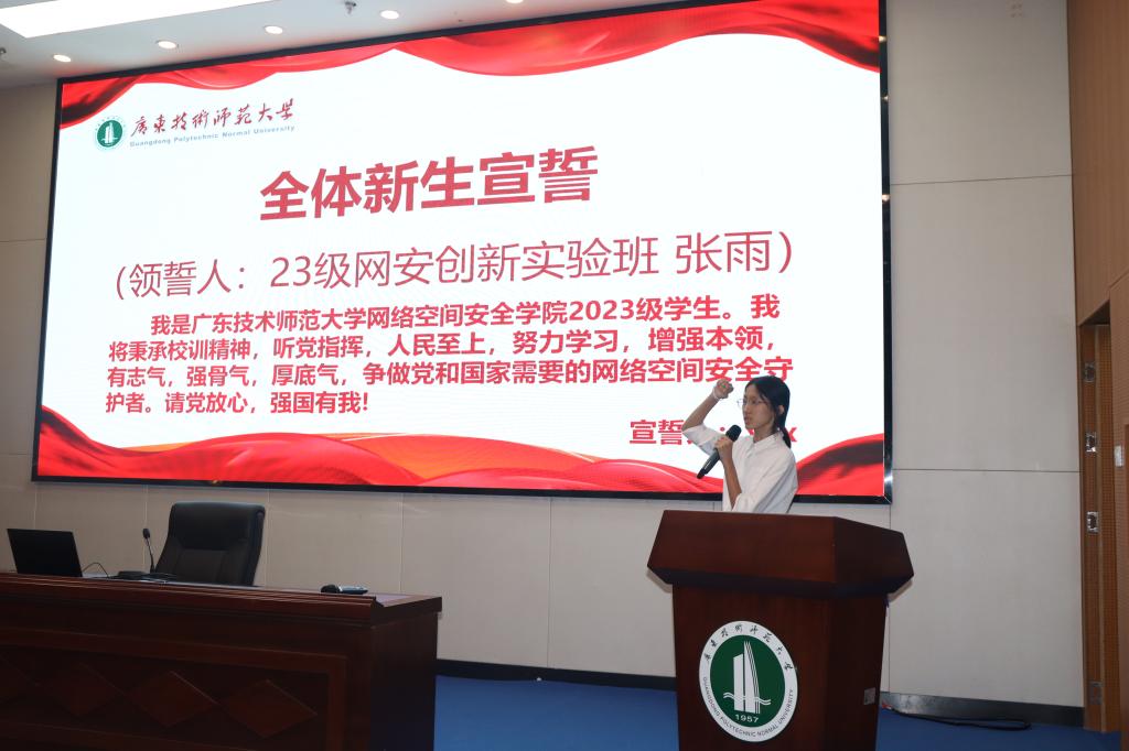 网络空间安全学院一直以来都十分重视新生入学教育。本次“思政第一课”活动,能帮助本科新生扣好第一粒扣子,爱党爱国,融校爱校,尽早树立大学目标和学习规划。同学们纷纷表示,未来将秉持“厚德博学 唯实求新”的校训,将满腔热血投入到专业学习中,并将心怀家国,努力成为一名理想远大、信念坚定的使命担当者;求真求实,成为一名善于学习、锐意创新的艰苦奋斗者;立己达人,成为一名崇德向善、严守纪律的知行合一者,为守护国家的网络安全贡献自己的力量。