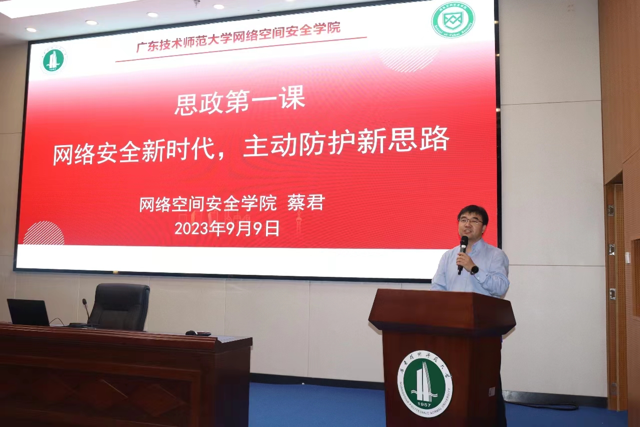 蔡君首先代表学院对全体新生表示热烈欢迎,并以《网络安全新时代,主动防护新思路》为主题向新生们讲授了“思政第一课”。他从新时代对网络安全人才的需求入手,向新生介绍了西校区和网络空间安全学院的发展现状和未来规划,并对新生提出了三点期望:一是要认识到培养工程意识比单纯在考试中获得高分成绩更重要。培养工程意识的关键是动手,在大学的学习中,同学们应该积极参与科创项目,多多动手实践;二是要养成批判性思维,在知识和科研的领域没有绝对权威,要在不断变化的环境和形势中时刻保持清醒的头脑;三是要运用好数学工具,数学是用来描述自然世界和科学规律的重要学科。作为工科生,要结合专业知识努力学习数学,做一名优秀的网安人才。