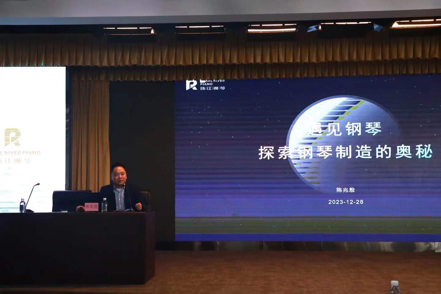 随后,广东省五一劳动奖章获得者陈兆殷同志以"探索钢琴制造的奥秘"为主题为同学们展开讲座,通过钢琴的起源、结构,钢琴制造行业的综合概况及珠江恺撒堡钢琴有限公司的发展历史等多个方面拓展了同学们对钢琴制造过程及行业发展的认知,感受到了精益求精的工匠精神和本土钢琴制造业这一路发展壮大的不易。讲座过程中,同学们积极参与问答现场气氛热烈。同学们纷纷表示,通过本次活动深刻了解了钢琴的发展史、制造工艺,切身实际感受到了工匠精神在推动国家企业发展中的重要作用,将来也要将以工匠精神严格要求自己,将工匠精神应用到自己的学习工作中,做到“精于工·匠于心·品于行”,日后为祖国的发展建功立业。