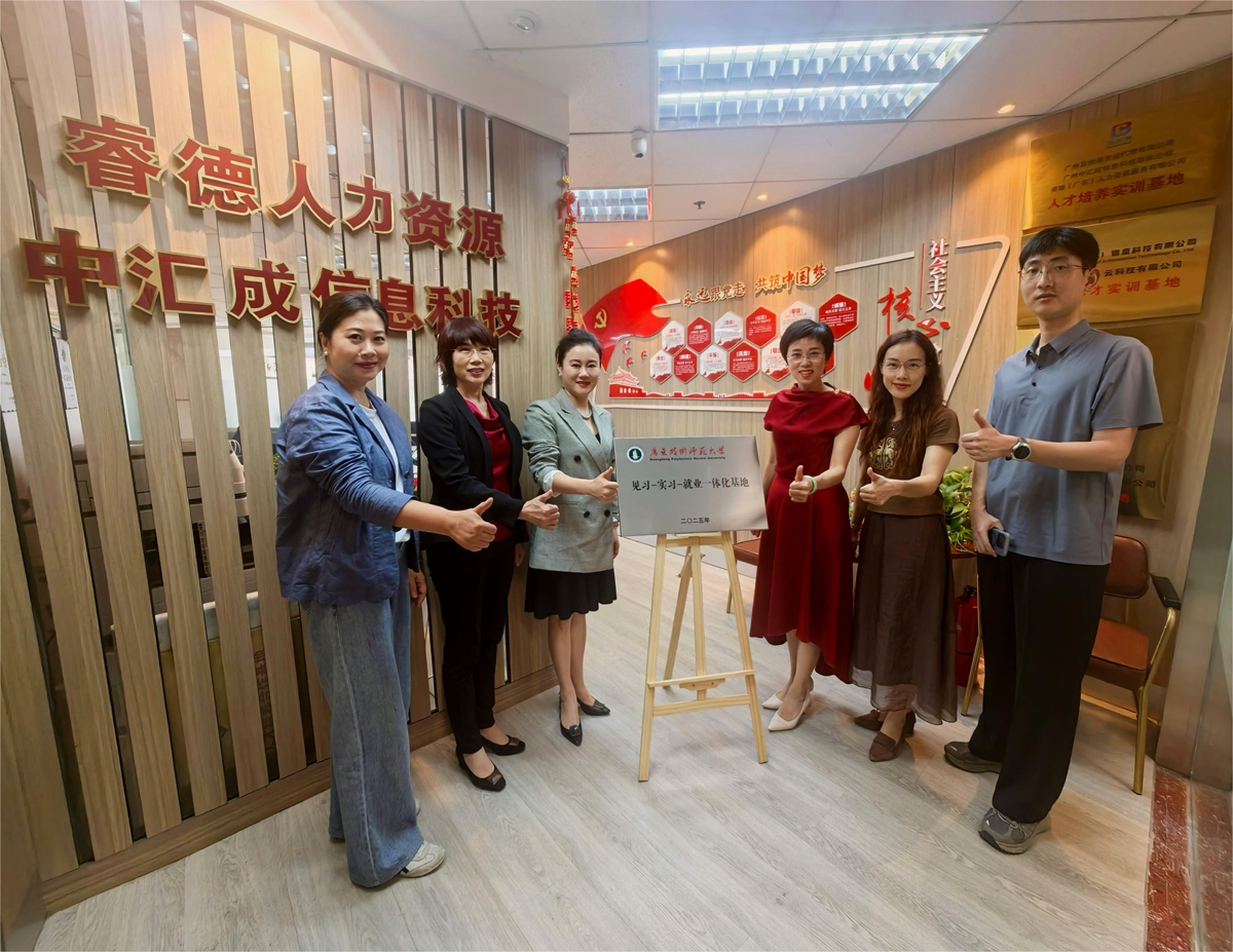 为进一步深化校企合作,拓宽学生就业渠道,10月16日下午,网络空间安全学院赴中信广场与广州市睿德人才(广东)云科技有限公司开展访企拓岗活动,并举行“见习-实习-就业一体化基地”共建仪式。公司创始人CEO、党支部书记、工会主席林婉玲,副总经理兼财务总监黄俗萍,学院党委书记陈小花、党委副书记肖茵茵等出席了本次活动。