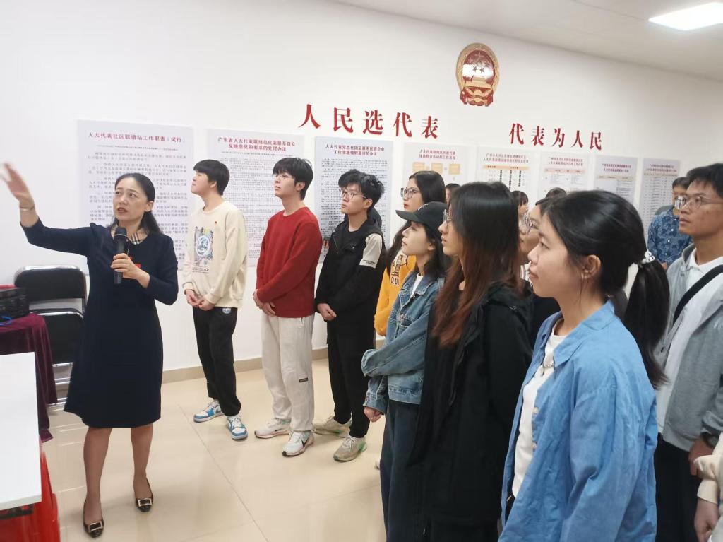 宣誓仪式结束后,穗园社区工作人员结合生动案例,围绕宪法核心要义、人大代表履职流程及基层民主制度等内容向同学们开展专题讲解。现场还设置了“模拟人大代表议案”互动环节,大家在实践中进一步深化了对我国根本政治制度的认知。