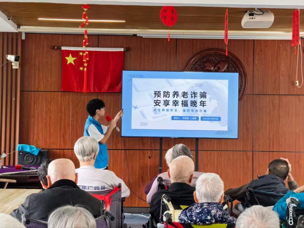为了进一步提升老年群体的防诈意识,保障社会民众的人身和财产安全,10月25日,我校网络安全科普科创协会受邀参加了广州白云康泰养老院举办的防诈公益宣讲活动。活动共吸引20余名老年居民积极参与,切实为老年群体筑牢了防诈“安全网”。