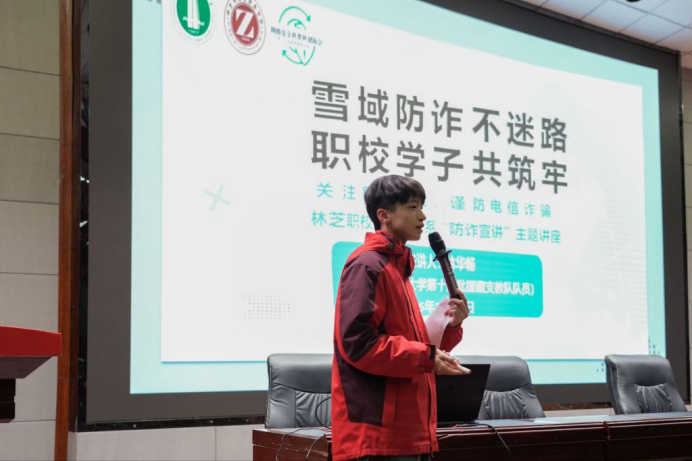 为深入贯彻落实党的二十届四中全会精神,切实提升职教学生防范电信网络诈骗的意识与能力,11月24日晚,网安科普科创协会于西藏林芝市职业技术学校开展了“雪域防诈不迷路、职校学子共筑牢”专题讲座。此次防诈骗公益宣讲活动是由网络空间安全学院学生、国家级网络安全公益讲师、援藏支教队成员林华畅主讲,覆盖8个班级、逾400名师生,以实际行动推动网络安全教育向边疆延伸。