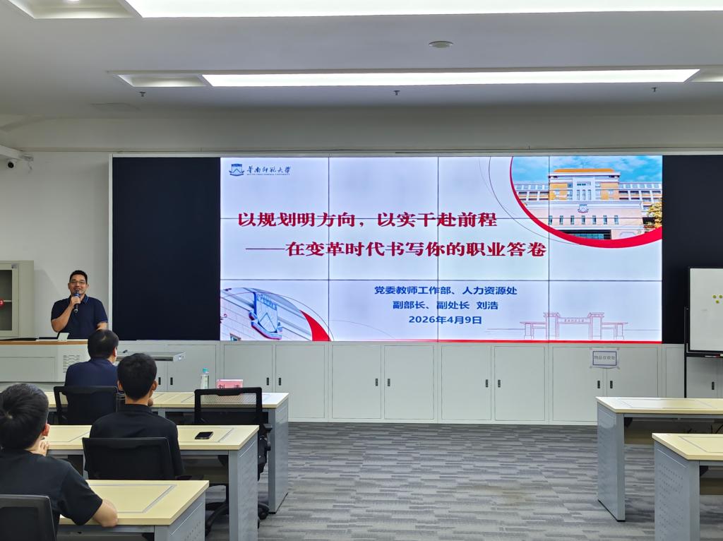 4月9日,网络空间安全学院特邀华南师范大学党委教师工作部副部长、人力资源处副处长刘浩在西校区实训楼205开展《以规划明方向,以实干赴前程——在变革时代书写你的职业答卷》专题讲座,学院 120 余名学生参加活动。